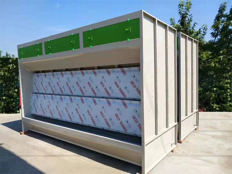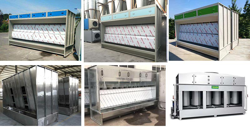 设备作业时,漆雾在负压风机牵引力的作用下进入高速旋流导轨装置,漆雾、旋风与水在高速旋转的进行气液乳化反应。气动混流装置的高速运转,使得漆雾与旋转液体充分混合,在离心力的作用下达到漆液分离。气旋桶内部采用水泵循环给水,由安装在隔水层底部的螺旋喷嘴喷出来,漆雾分离出来的粉尘颗粒物下沉到水箱底部,分离后的气体进入环保填充料隔水层,然后进入后段的废气处理设备。经过气旋净化柜处理漆雾净化率可达95%以上。