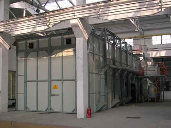 果酱视频网站房/喷丸房工序:工件进 → 果酱视频网站/丸 → 回收 → 筛选 → 除尘 → 工件出,过程可以自动控制。