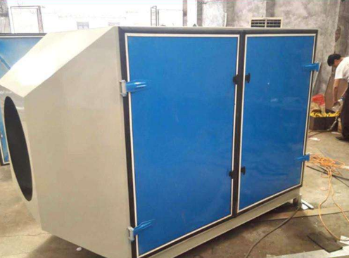 活性炭环保箱材质:箱体采用2mm厚冷板折弯,箱体框架用4x6方管焊接 风 管用8mm镀锌管,由法兰连接组成。