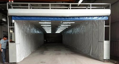 移动果酱视频色版喷漆房为钢制框架结构,可前后果酱视频色版移动。框架之间的滑动连接机构保证框架在驱动装置的带动下沿地面的轨道前后竖直平行移动,同时带动蓬布展开合拢。移动前室收缩合拢时,将工件移入工作区,展开时可进行工件的喷漆或打磨工作。在不喷漆的工作时间内,可将前室合拢,腾出空间场地作为其他与喷漆交叉作业的工序使用。