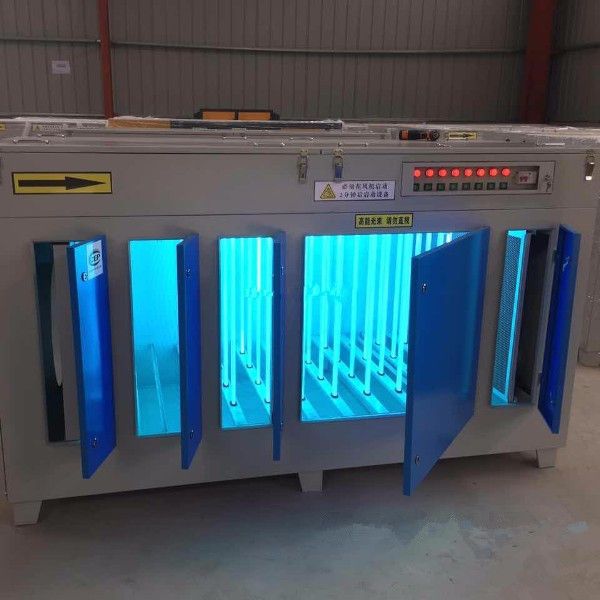 [设备原理] : 运用253.7纳米波段光切割、断链、燃烧、裂解废纷子链,改变分子结构;取185纳米波段光对废气分子进行催化氧化,使破坏后